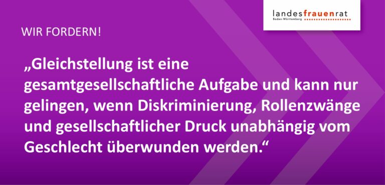 19. November 2025 – Internationaler Männertag Geschlechtergerechtigkeit gemeinsam gestalten Der Landesfrauenrat Baden-Württemberg (LFR BW) begrüßt den Internationalen Männertag als wichtigen Anlass, die gesellschaftlichen Herausforderungen und Chancen der Geschlechtergerechtigkeit gemeinsam ins Blickfeld zu rücken. Seit mehr als 50 Jahren setzt sich der LFR BW für die Gleichstellung von Frauen ein und versteht Gleichstellungsarbeit stets als gesamtgesellschaftliche Aufgabe. Der heutige Tag lenkt weltweit die Aufmerksamkeit auf die vielfältigen Lebensrealitäten von Männern – im Beruf, in der Familie und in der Gesellschaft. Auch Männer stehen vor spezifischen Herausforderungen, etwa in Bezug auf Rollenbilder, Gesundheit oder die Vereinbarkeit von Familie und Beruf. Der LFR…