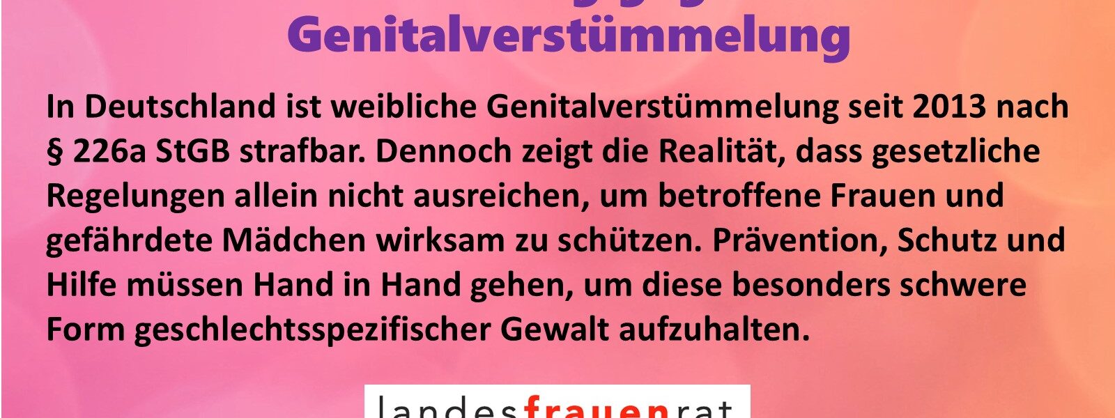 Internationaler Tag gegen weibliche Genitalverstümmelung Der 6. Februar ist der Internationale Tag gegen weibliche Genitalverstümmelung (Female Genital Mutilation, FGM). Dieser Tag macht auf eine gravierende Menschenrechtsverletzung aufmerksam, die Millionen Frauen und Mädchen weltweit betrifft. Weibliche Genitalverstümmelung ist eine besonders schwere Form geschlechtsspezifischer Gewalt, bei der Teile des weiblichen Genitalbereichs verletzt oder entfernt werden. Nach Angaben von UNICEF waren im Jahr 2024 weltweit über 230 Millionen Frauen und Mädchen von FGM betroffen. Rund 144 Millionen leben in Afrika, etwa 80 Millionen in Asien und weitere 6 Millionen im Nahen Osten. Doch auch in Europa und in Deutschland ist weibliche Genitalverstümmelung Realität. Laut dem Bundesministerium für Bildung, Familie, Senioren, Frauen und Jugend leben derzeit rund 123.000 betroffene Frauen und minderjährige Mädchen in Deutschland. Zudem gelten etwa 25.000 Mädchen, die hier leben, als akut gefährdet (Pressemitteilung vom 10.12.2025). […]