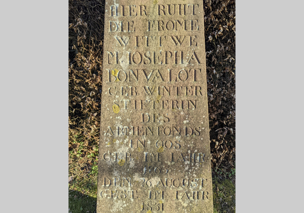Mit ihrem Vermächtnis von 7666 Gulden legte Josepha Bonvalot, Witwe des fürstlich Thurn und Taxis’schen Hofkonditors Stephan Bonvalot, den Grundstein zum ersten Armenfonds in ihrer Wahlheimat Oos (seit 1928 Ortsteil von Baden-Baden).